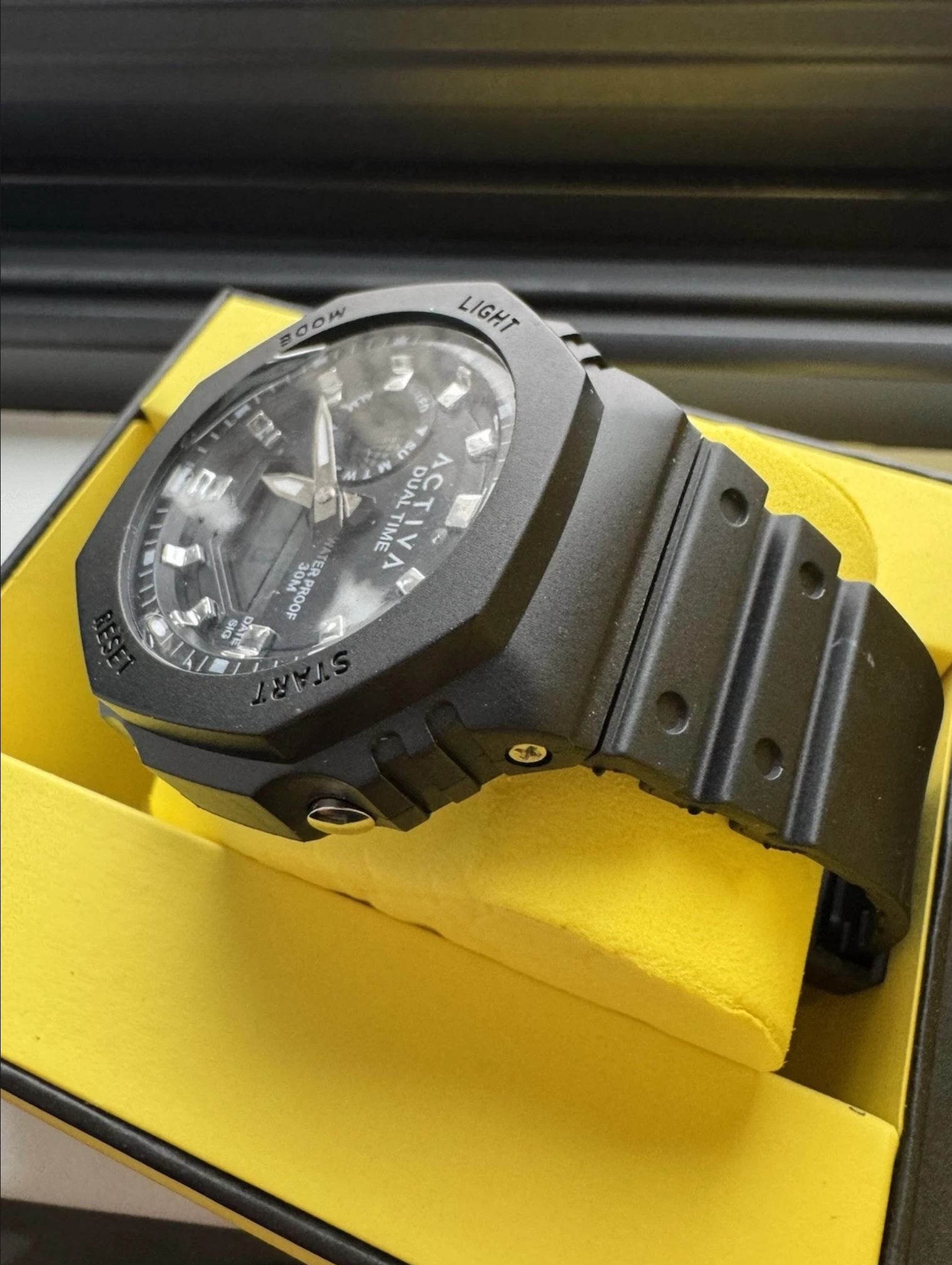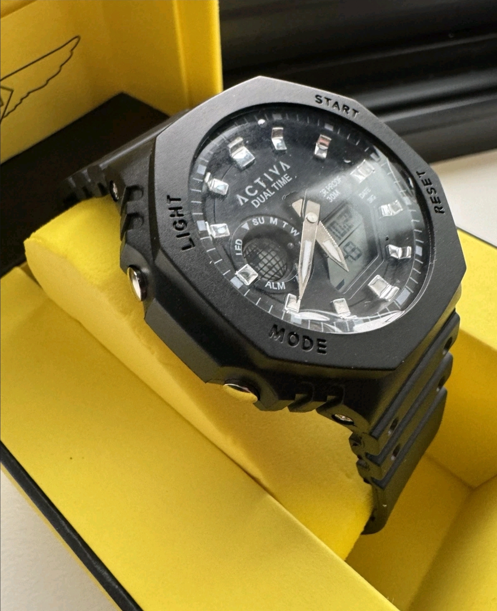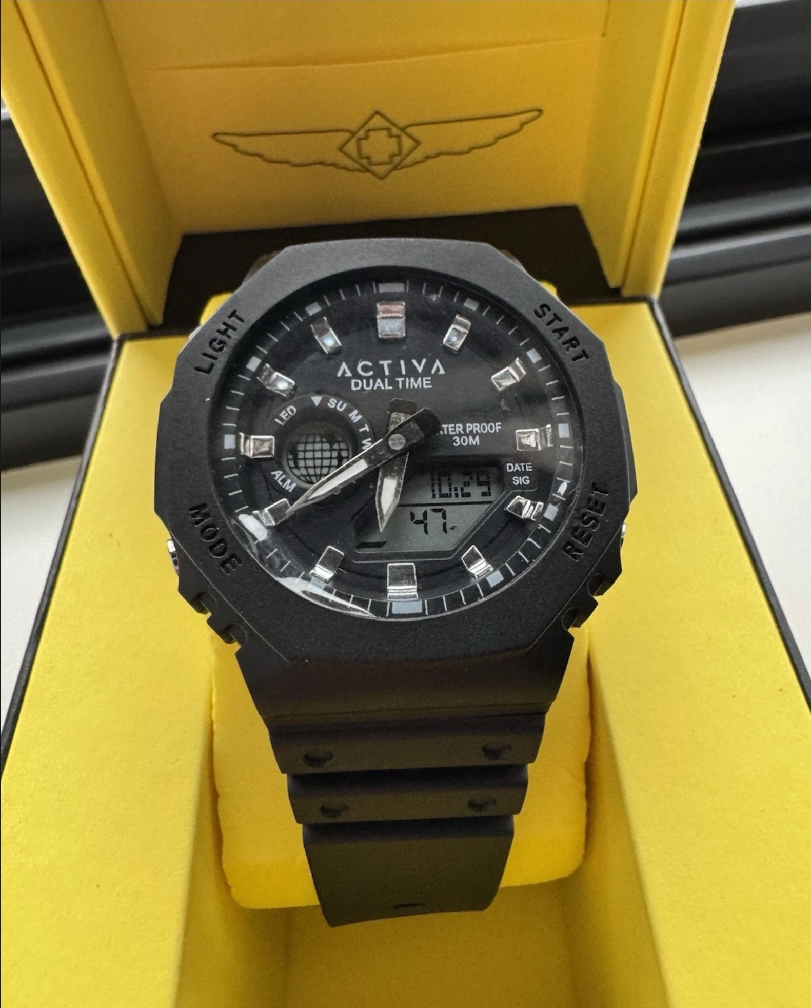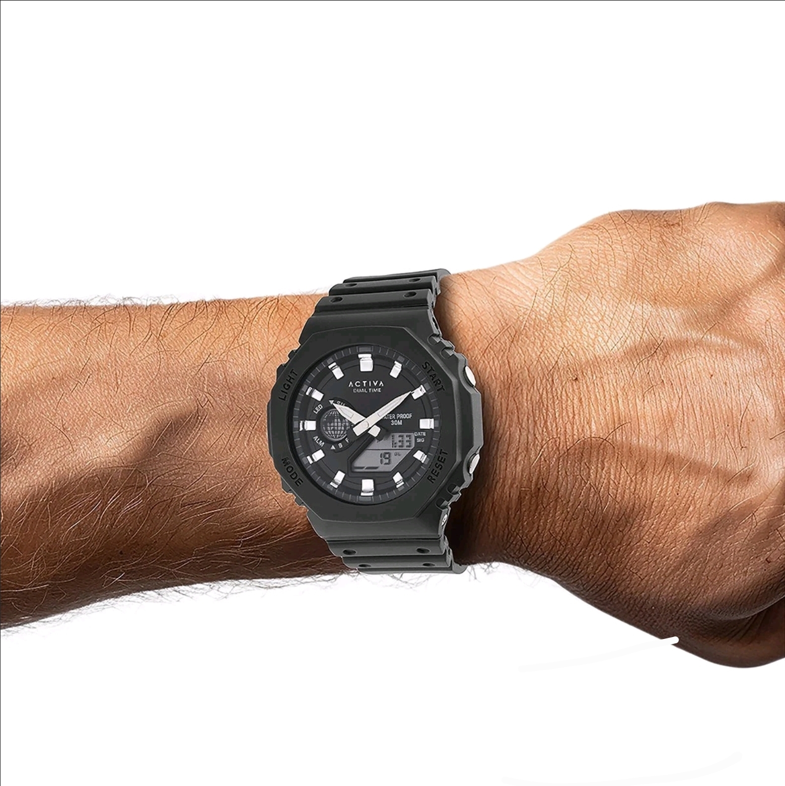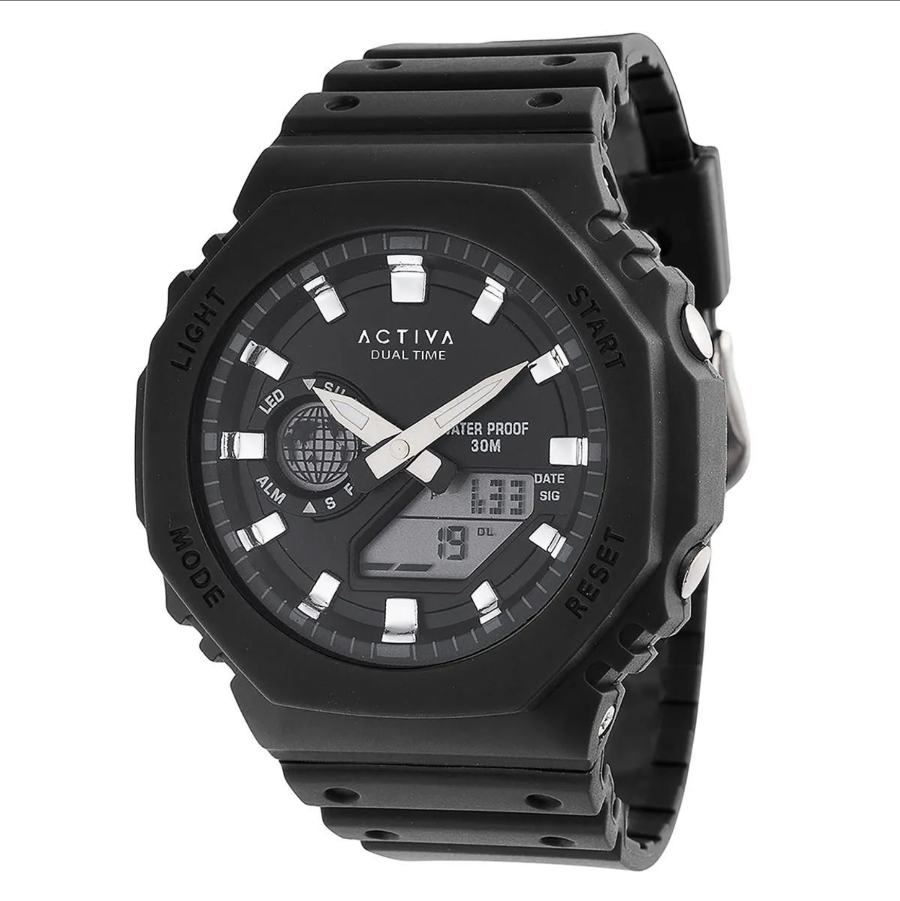 Experience the pinnacle of durability and functionality with the Activa X Invicta Collaboration Men’s Watch – Black (ACW423-002). Engineered to withstand the rigors of your active lifestyle, this shock-resistant digital sport watch is your ultimate companion, blending reliability and style effortlessly.Functions:World time: Dual timeStopwatch Funtion: 1/1-second stopwatchStopwatch Measuring Capacity: 29’59.99″Stopwatch Measuring Modes: Elapsed TimeAlarm: Single AlarmLight: LED backlight Afterglow From Invicta’s founding more than a century ago to the present day, innovation and excellence have been at the core of each era and collection throughout the brand’s history.