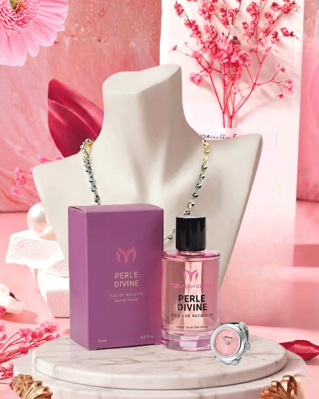 (Ring, Necklace, Perfume)
